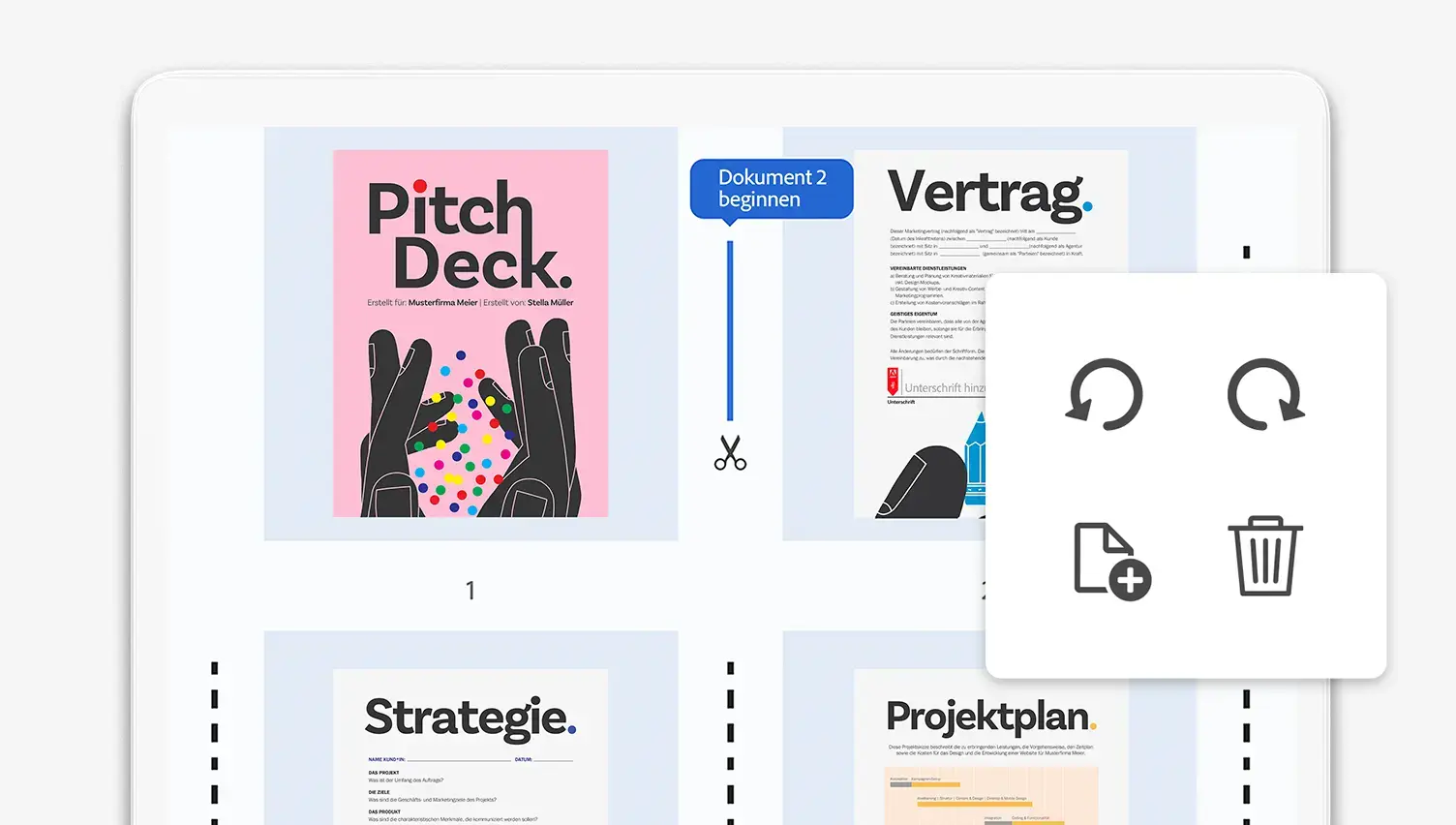Auf einem iOS- oder Android-Tablet PDF-Seiten neu anordnen, löschen oder drehen