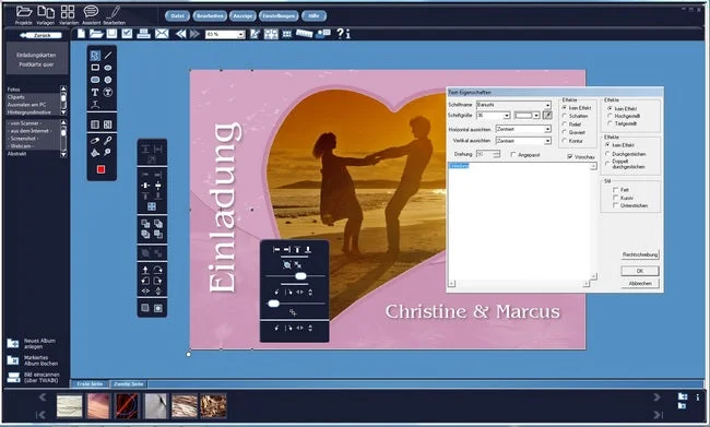 Wählen Sie aus zahlreichen Mustervorlagen und passen Sie diese nach Belieben an: Texte ändern, eigene Bilder einfügen, Fotos mit kreativen Effekten versehen – alles geht kinderleicht. So wird jede Karte zu einem persönlichen Kunstwerk.