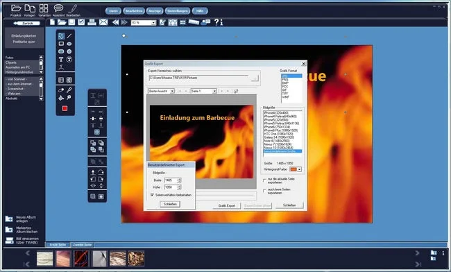 Ihre fertigen Karten können Sie bequem in allen gängigen Formaten drucken – optional sogar mit beeindruckendem 3D-Effekt. Alternativ exportieren Sie Ihre Entwürfe smartphone-optimiert, laden sie direkt in soziale Netzwerke wie Facebook, Twitter oder Pinterest hoch oder versenden sie per E-Mail an Ihre Gäste.